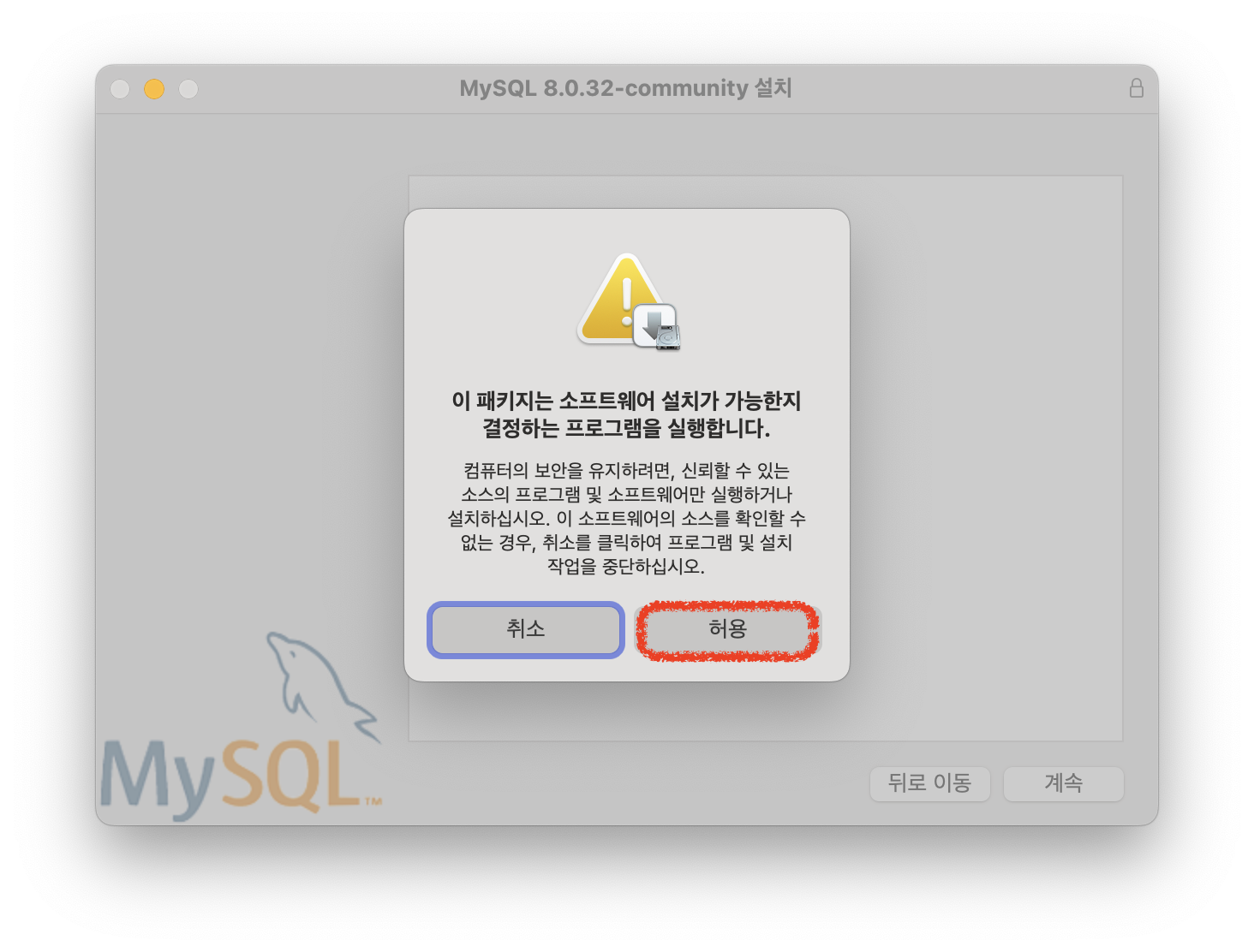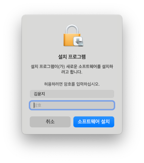 다운받은 패키지를 누르면 이렇게 뜬다. 그냥 허용 해주면 된다.