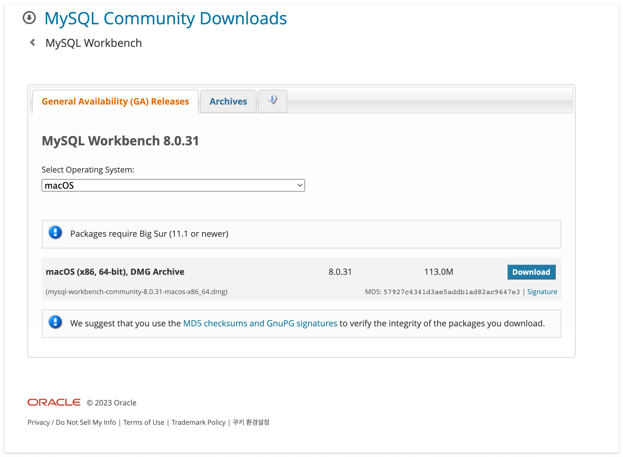 https://dev.mysql.com/downloads/workbench/ 에 가서 다운로드하기